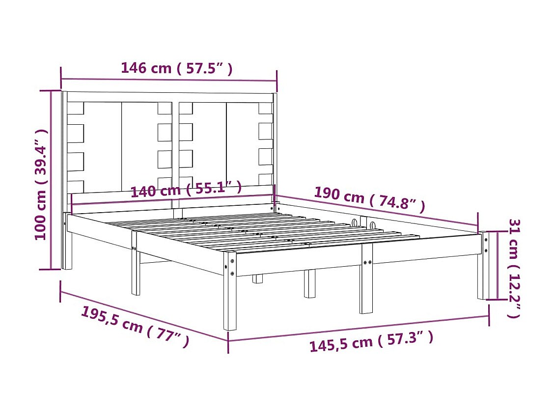 Zwart matrasloos bedframe 140x190 cm massief grenenhout