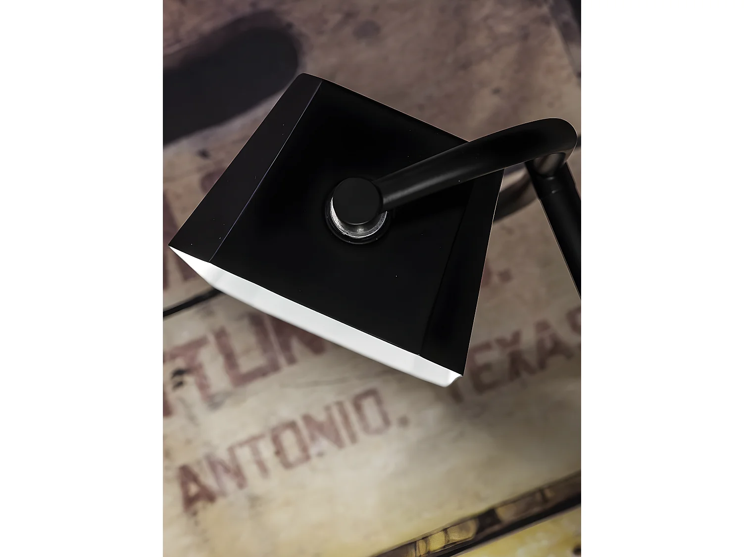 Zwart metalen tafellamp met naturel houten voet