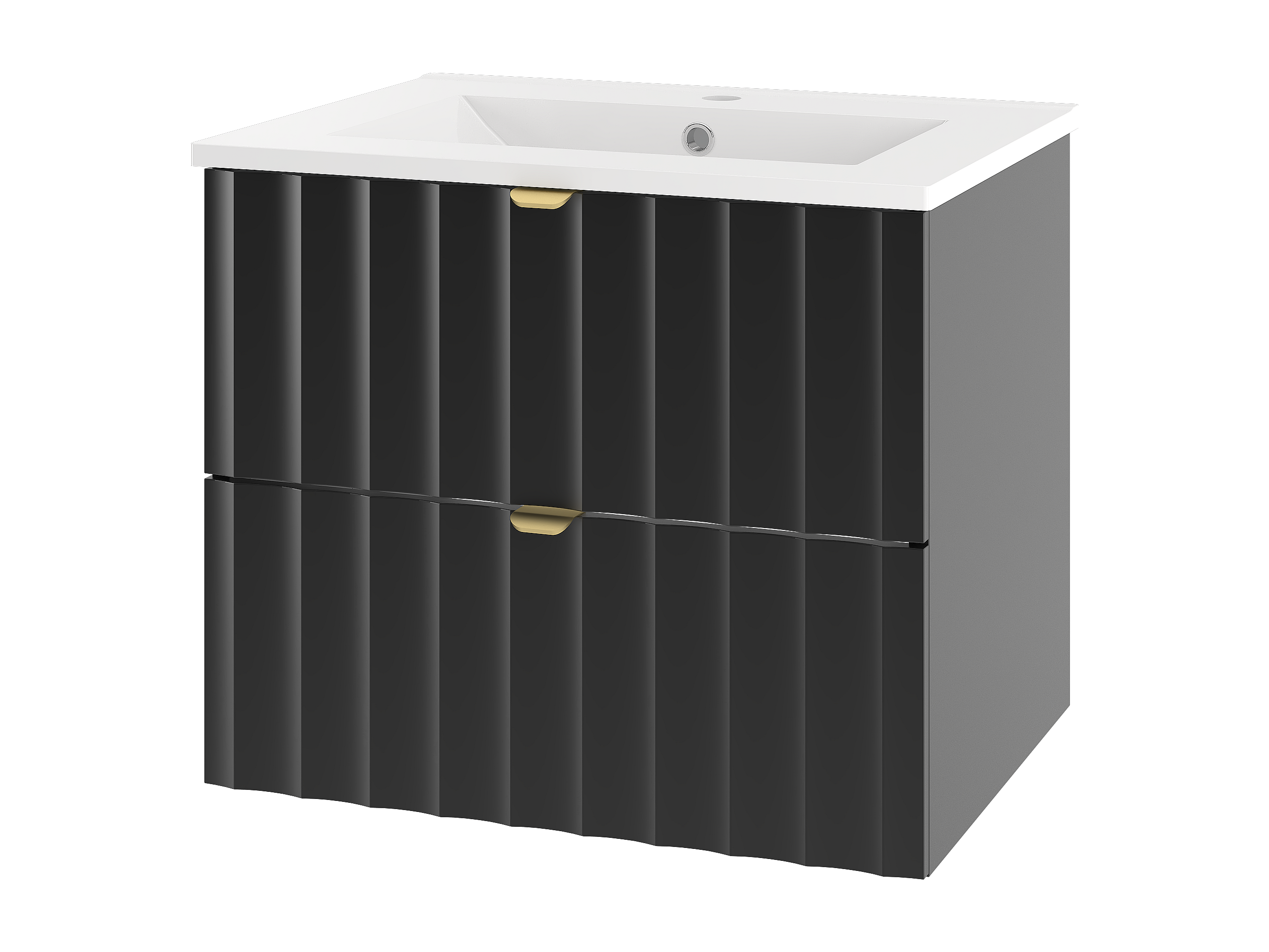 Zwarte badkamerset 60 cm Kast met wastafel Geribbelde fronten Arcos