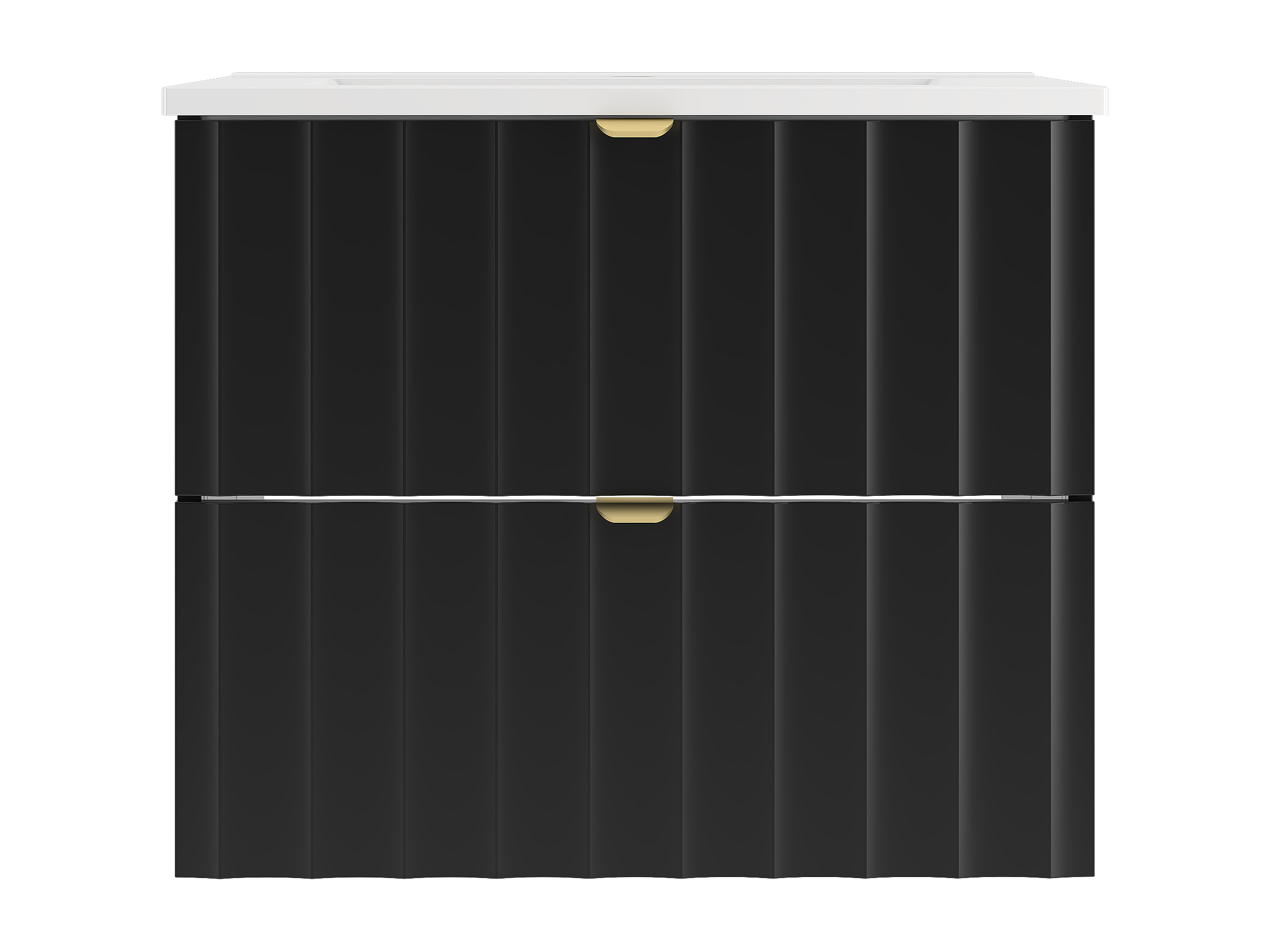 Geribbeld hangmeubel voor badkamer met inbouwwastafel - Zwart - 60 cm - ZEVARA