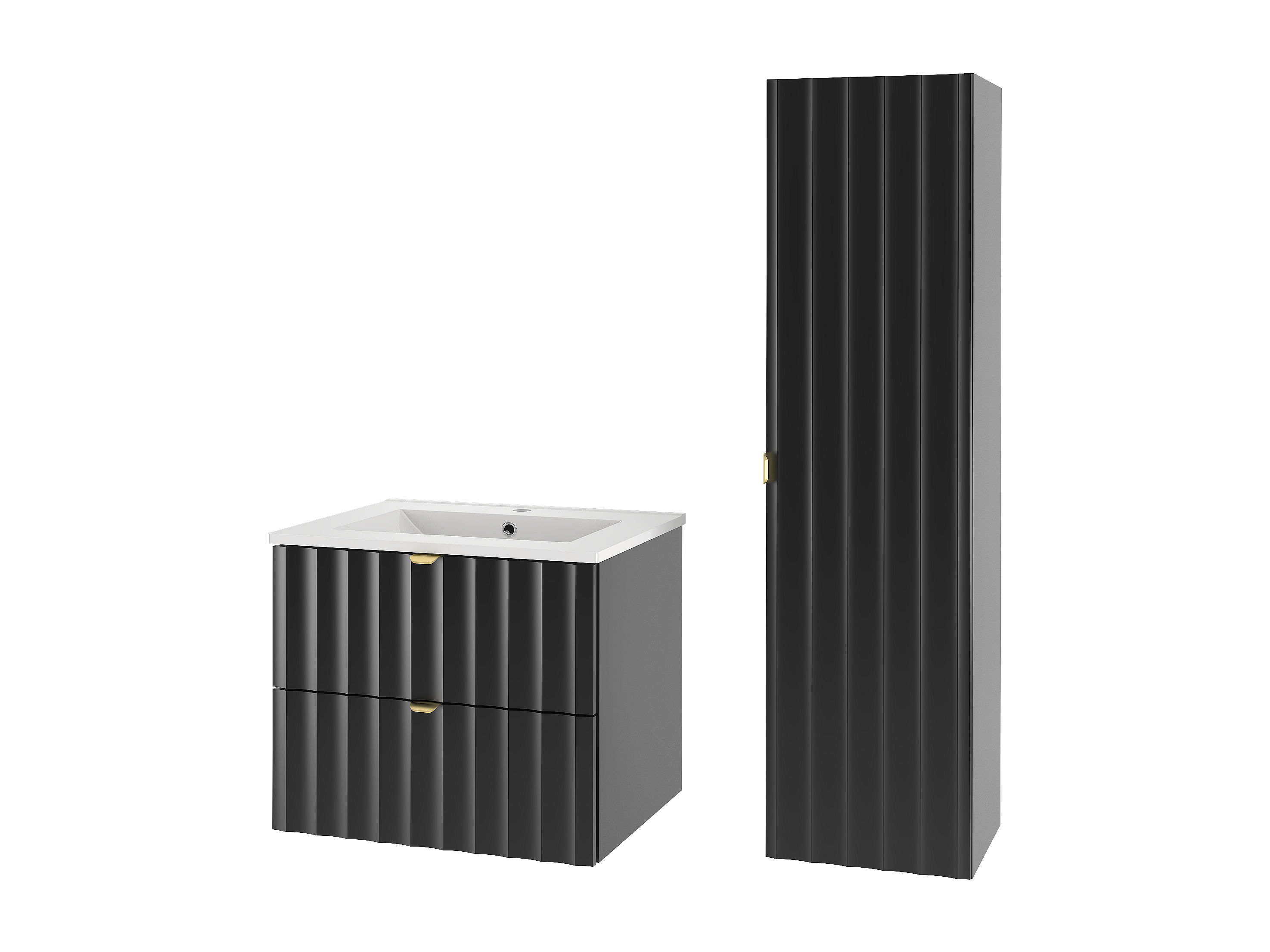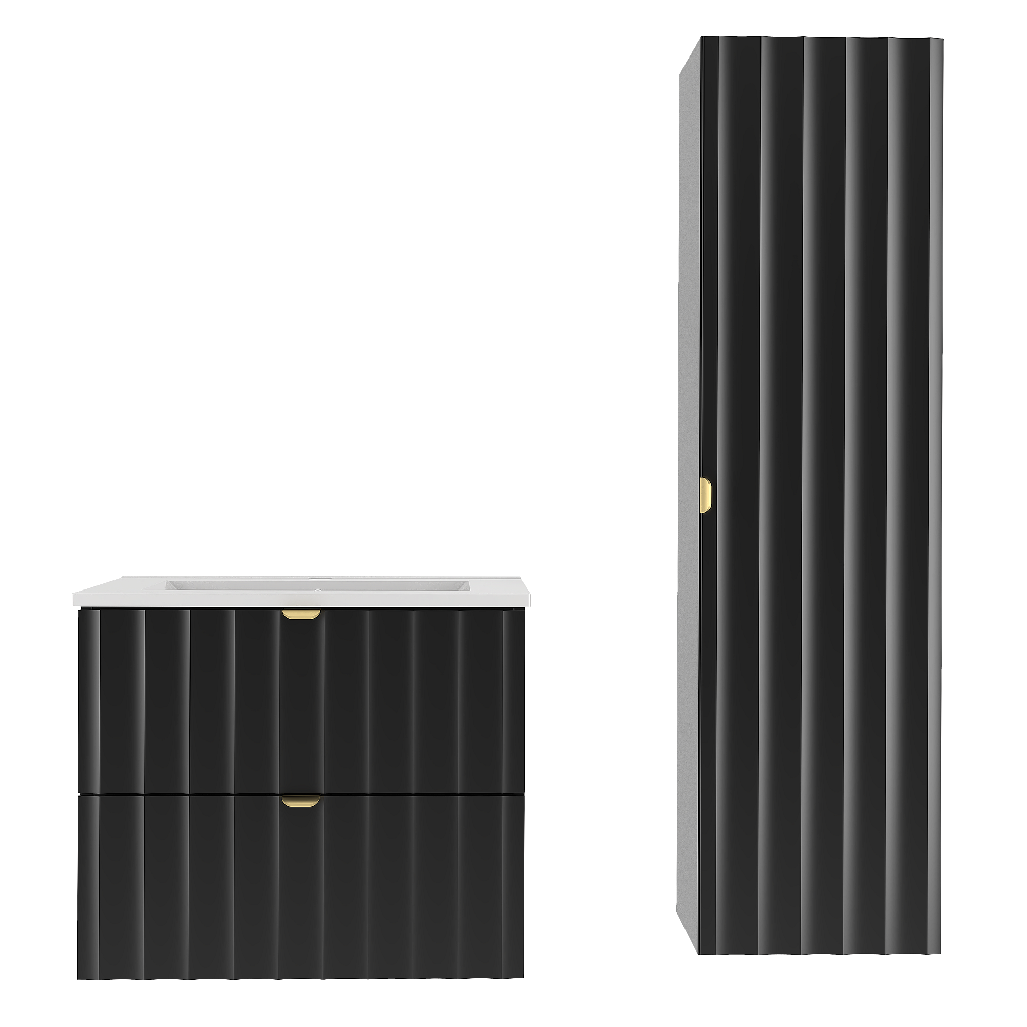 Badkamerset 60 cm Geribbelde fronten Zwart Amy Kolom