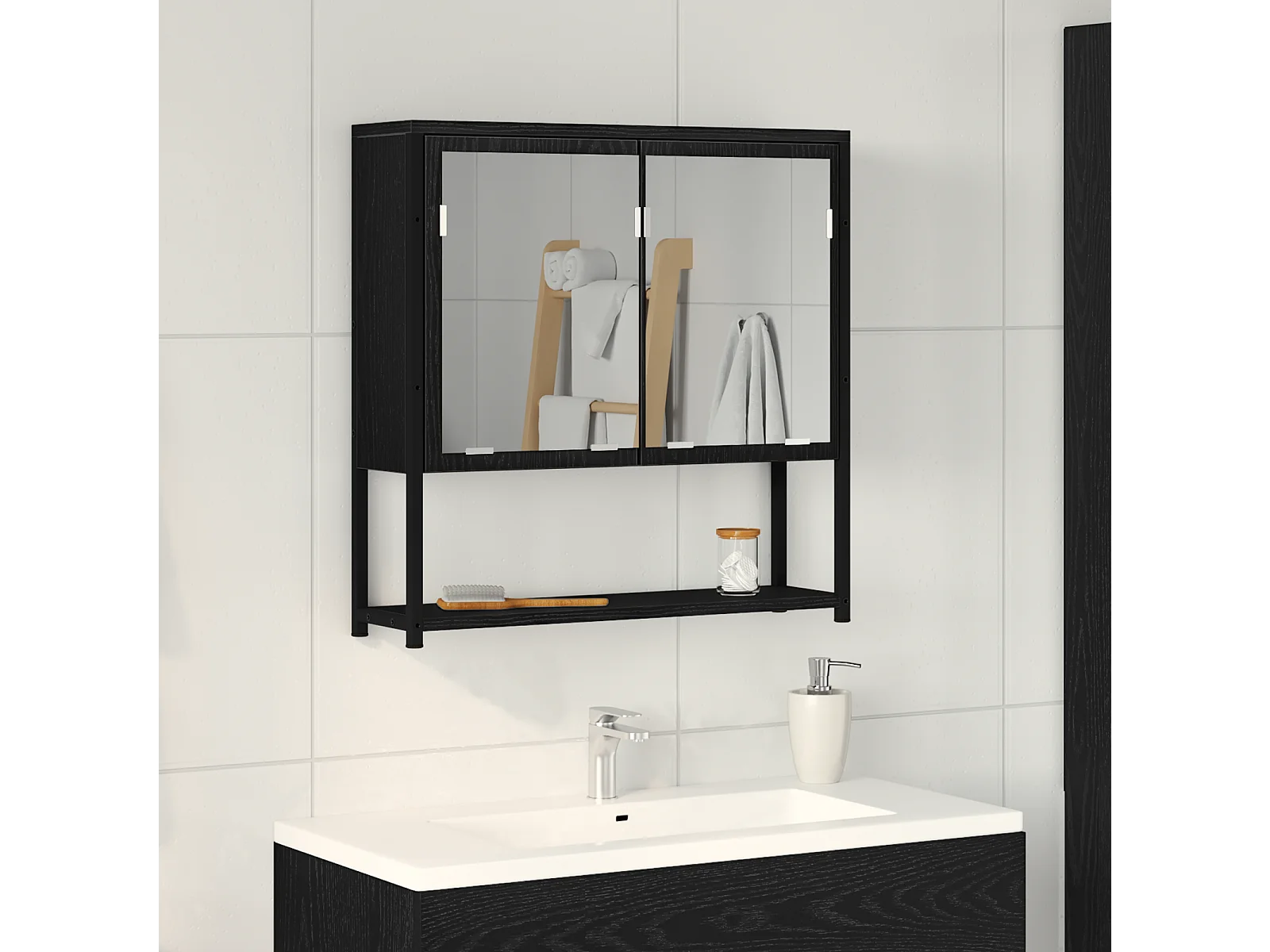 Zwarte badkamerspiegelkast van bewerkt hout