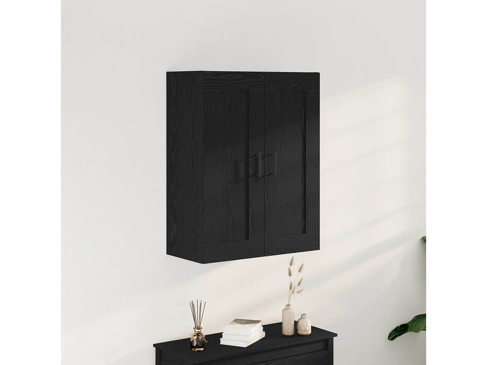 Zwarte eiken wandkast 69,5 x 34 x 90 cm bewerkt hout