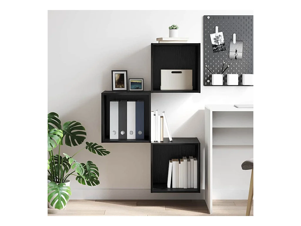Zwarte eiken wandkast 37 x 37 x 37 cm bewerkt hout