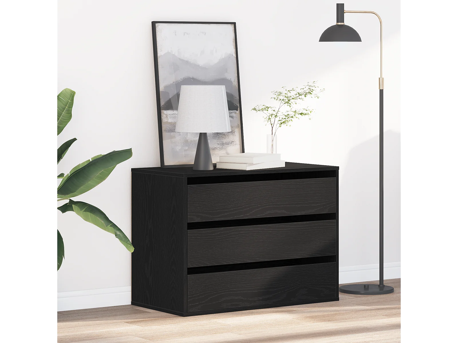 Zwarte eiken ladekast 91x35,5x74,5 cm bewerkt hout