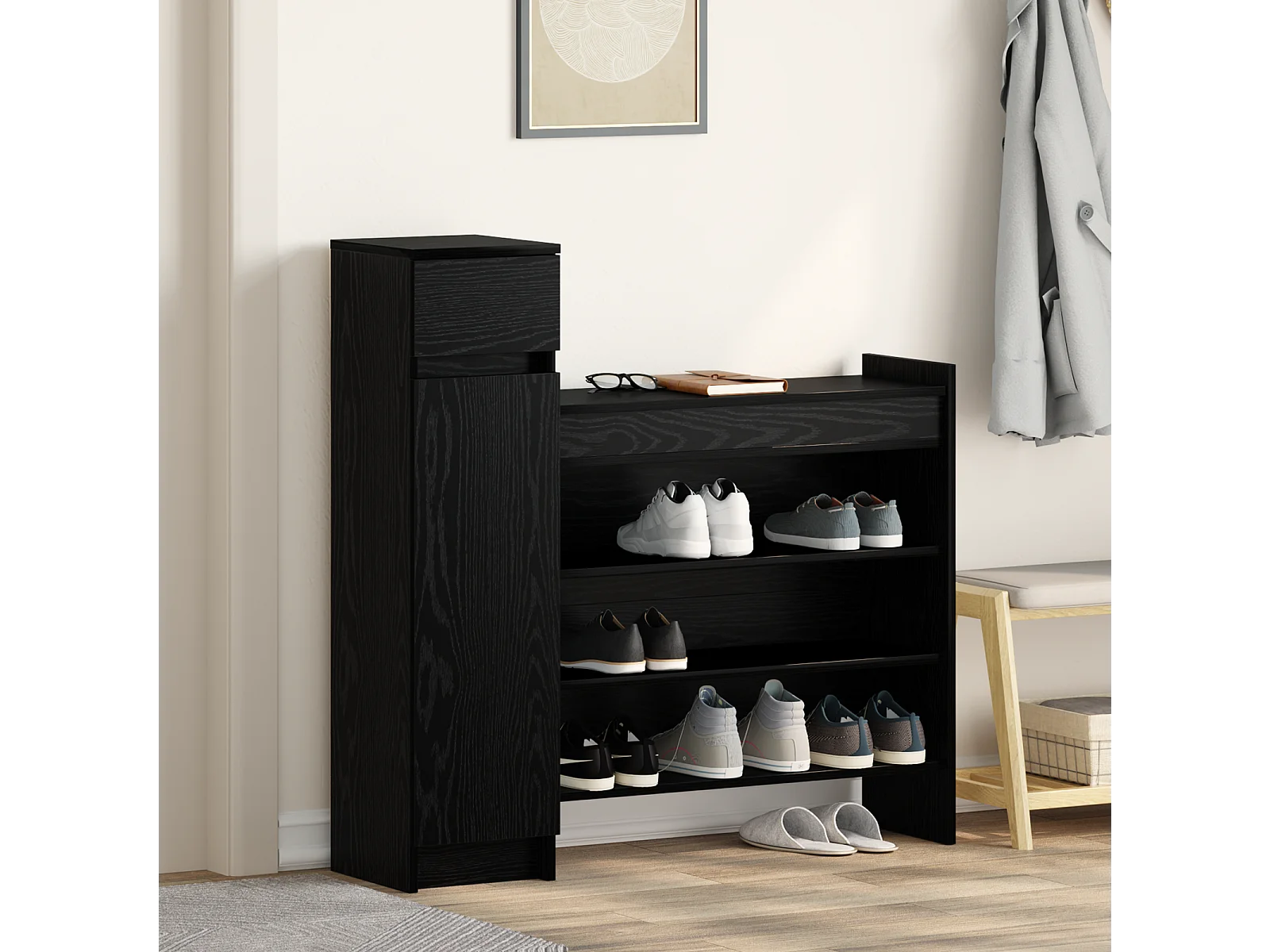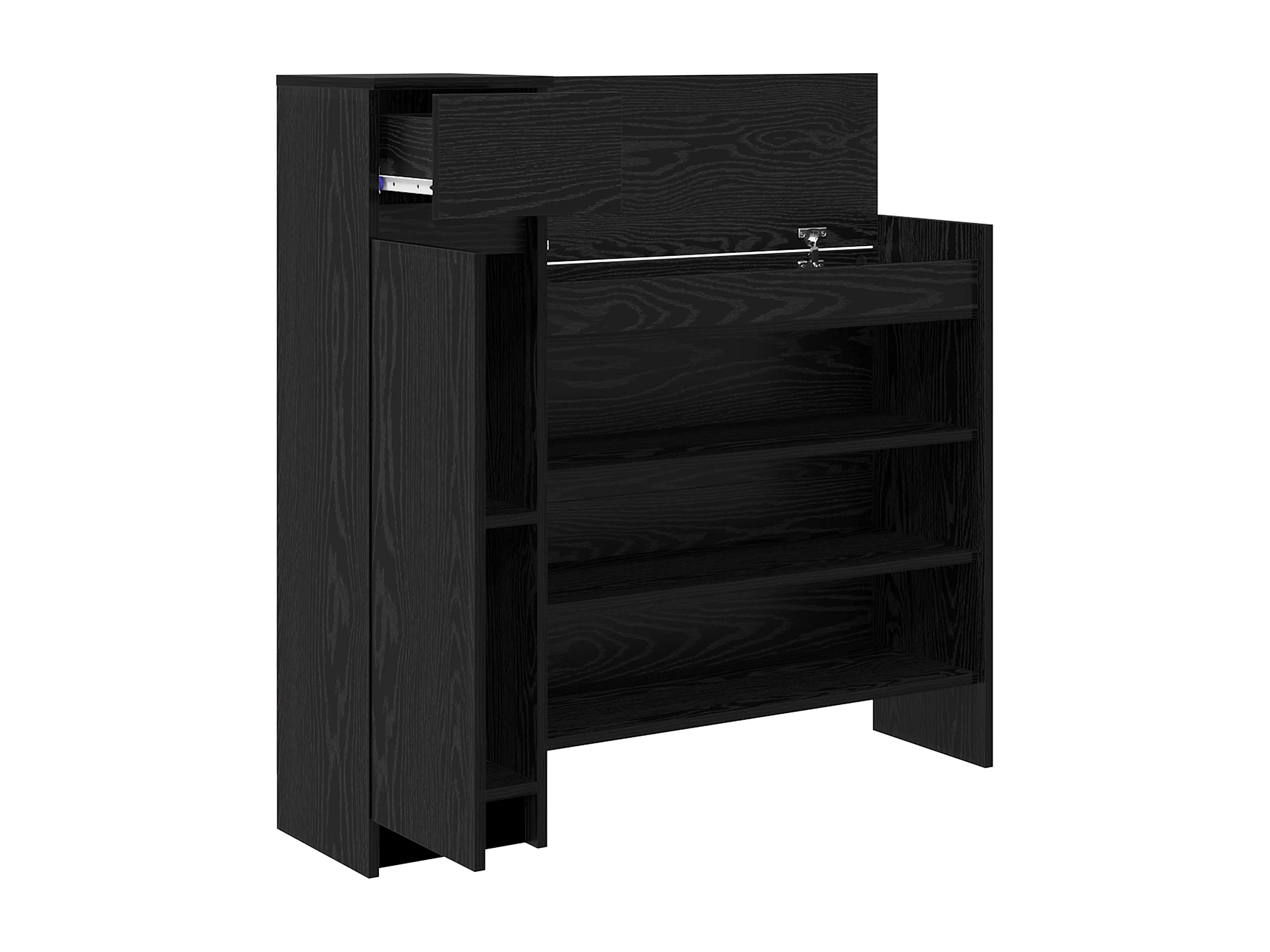 Zwarte eikenhouten schoenenkast 100,5x28x100 cm in MDF-hout