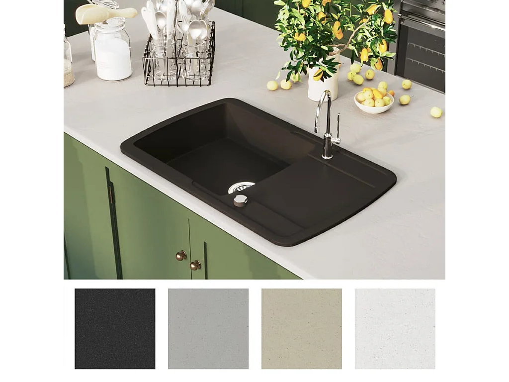 Zwarte granieten spoelbak met één kom