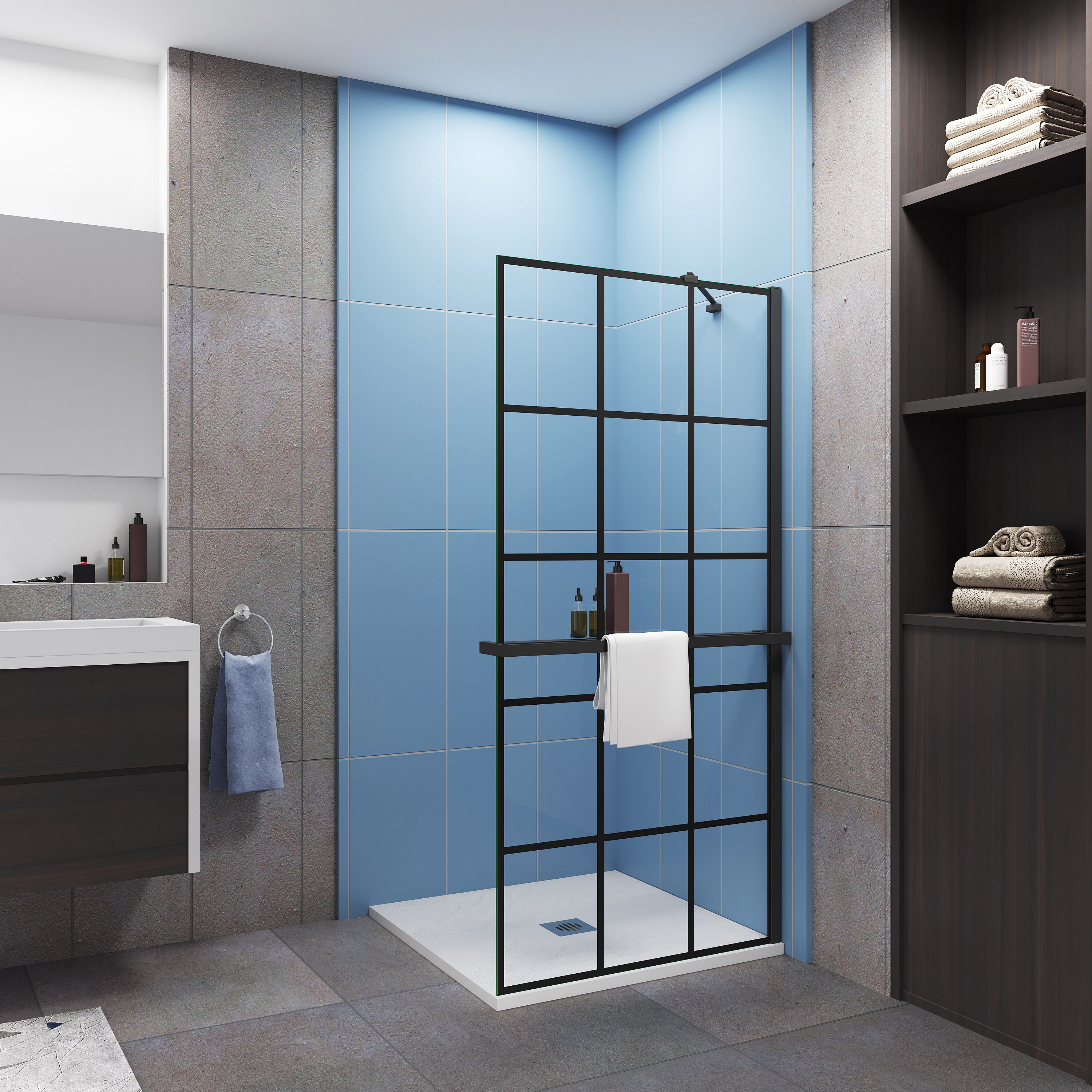 Zwart inloopdouchescherm 100x200cm - 8mm antikalkglas + 100cm doucheplank + 90cm montagestang