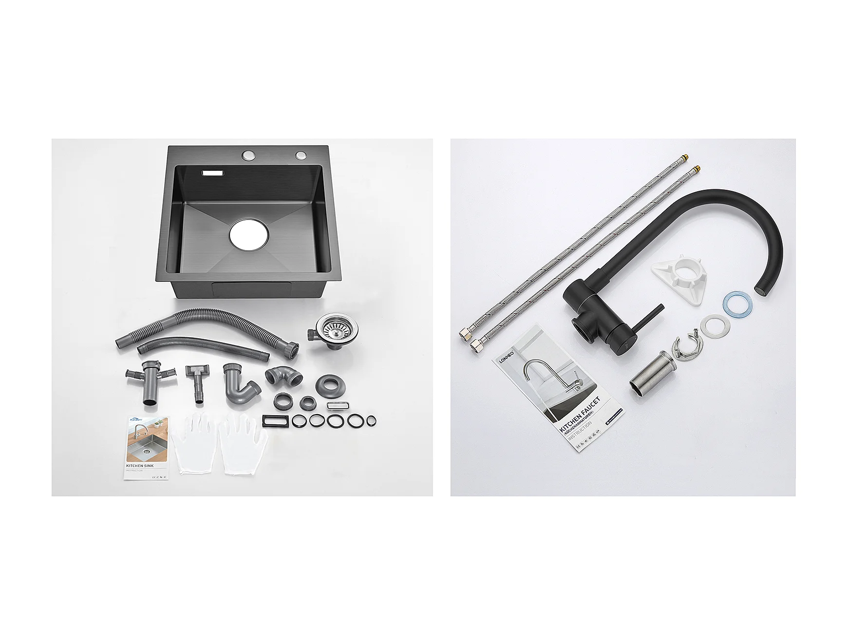Zwarte keuken spoelbak 1 bak 45x45CM 304 roestvrij staal, inbouw en op te zetten+MitIgeur RVS 304 opklapbaar draaibaar 3, EU Model