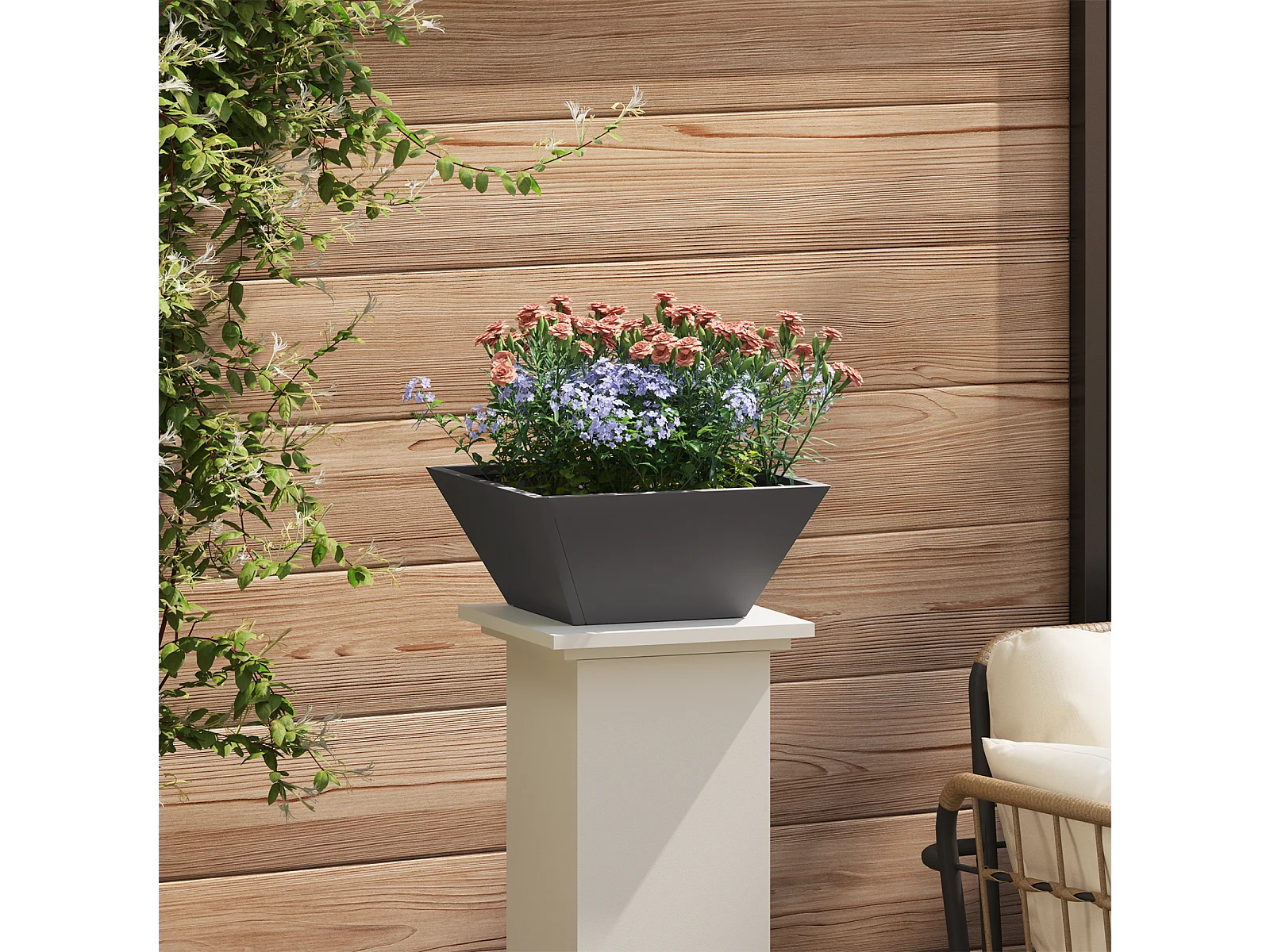 Zwarte metalen pot 35 x 35 x 15 cm Duurzaam vierkant modern