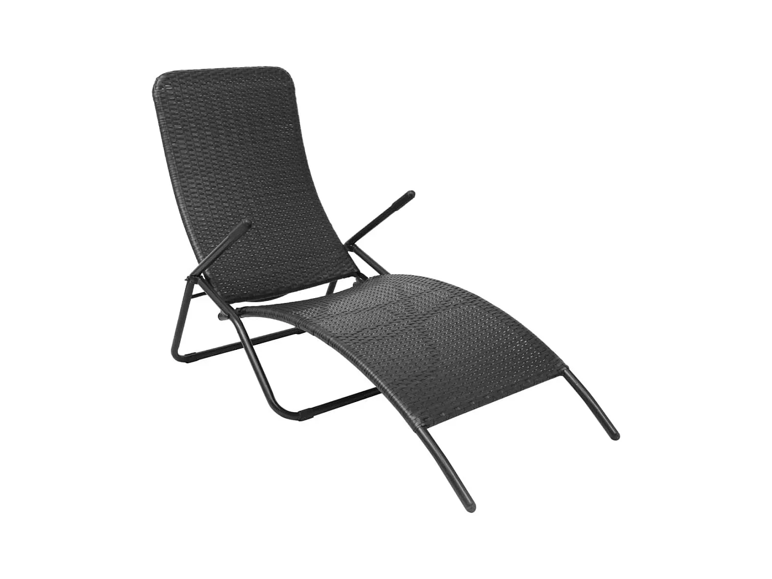 Opvouwbare loungestoel met kussen en opbergruimte van zwart geweven hars
