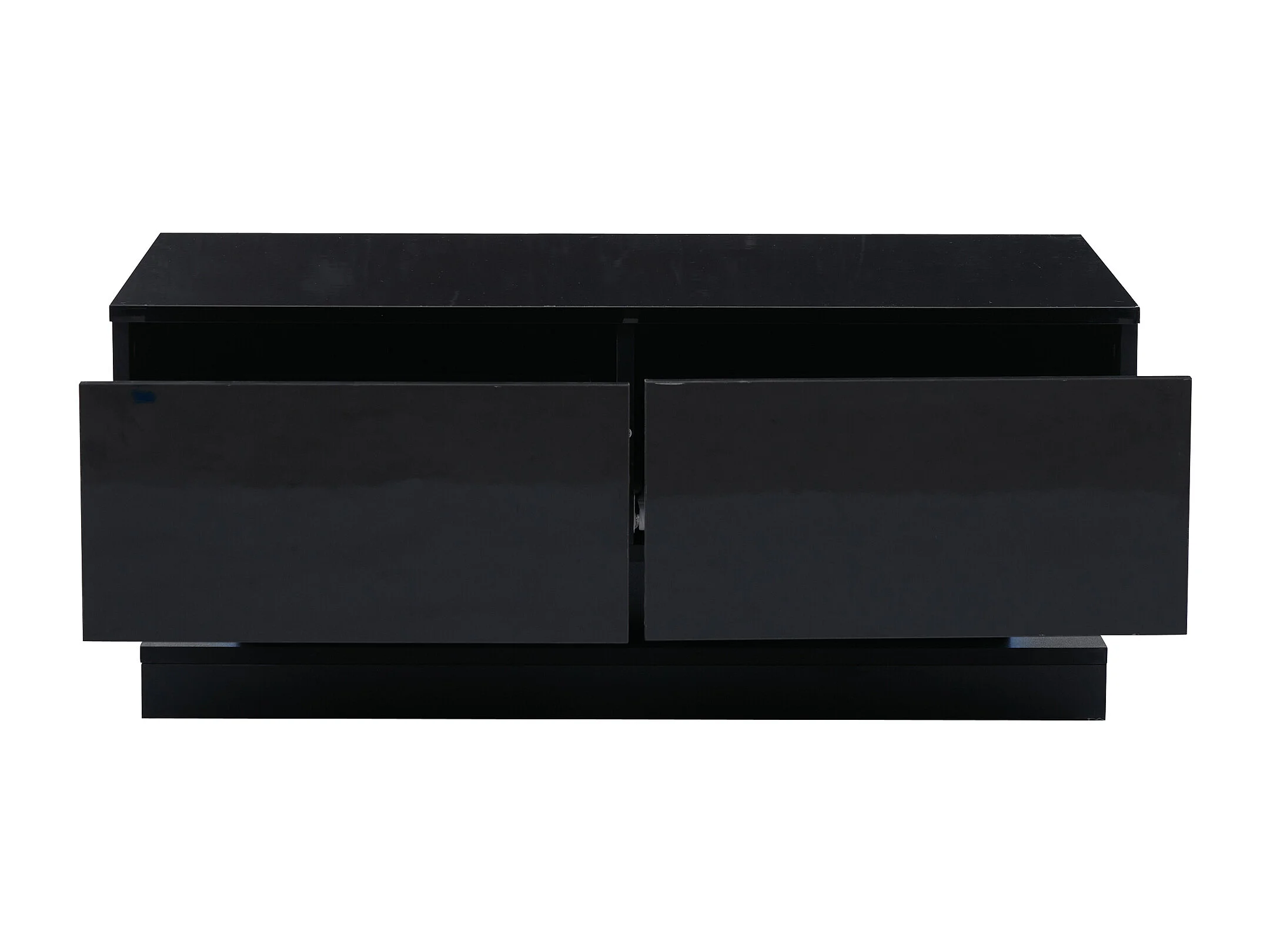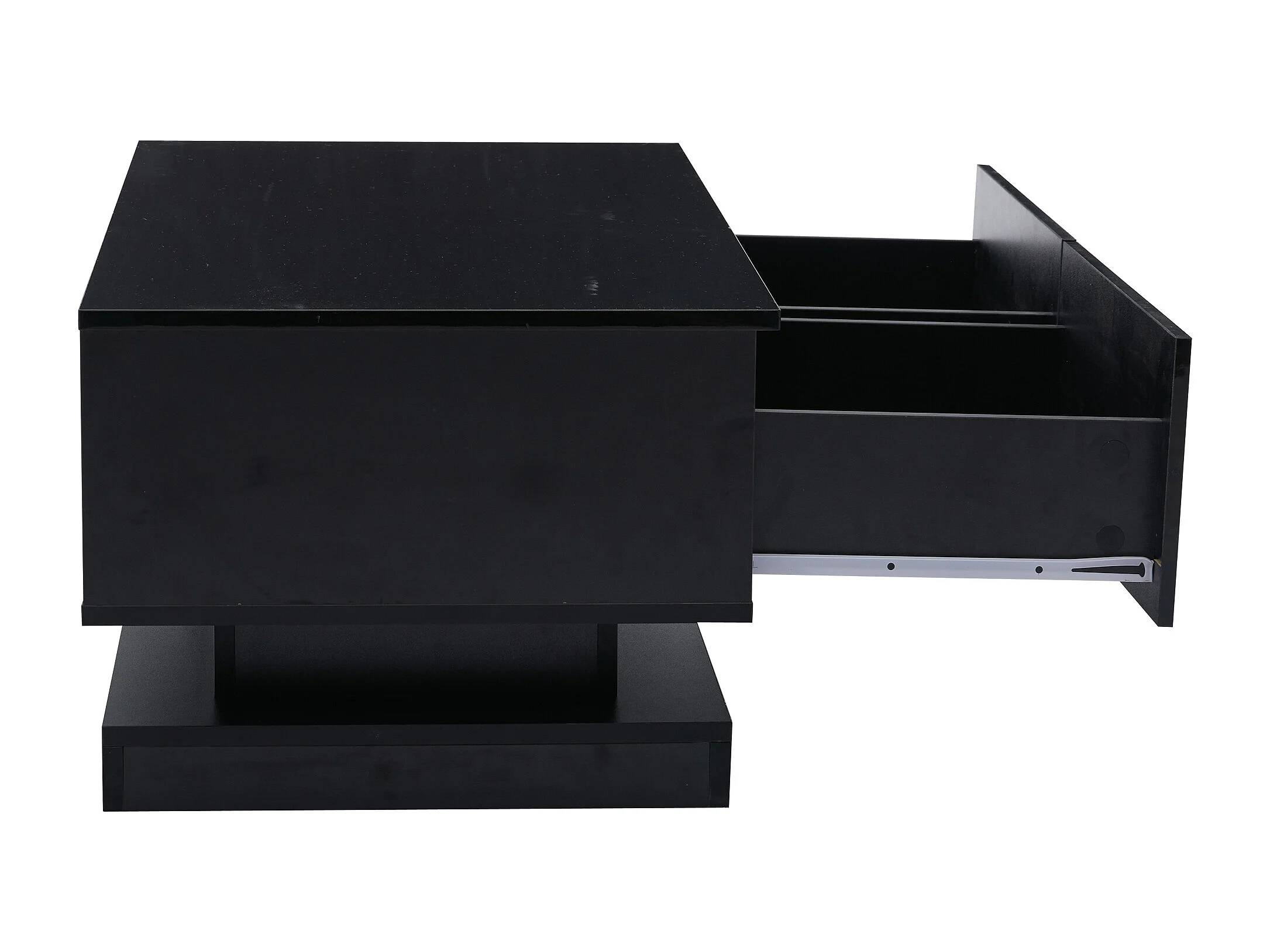 Zwarte rechthoekige salontafel - Salontafel met LED-verlichting en 2 lades - Glanzende afwerking