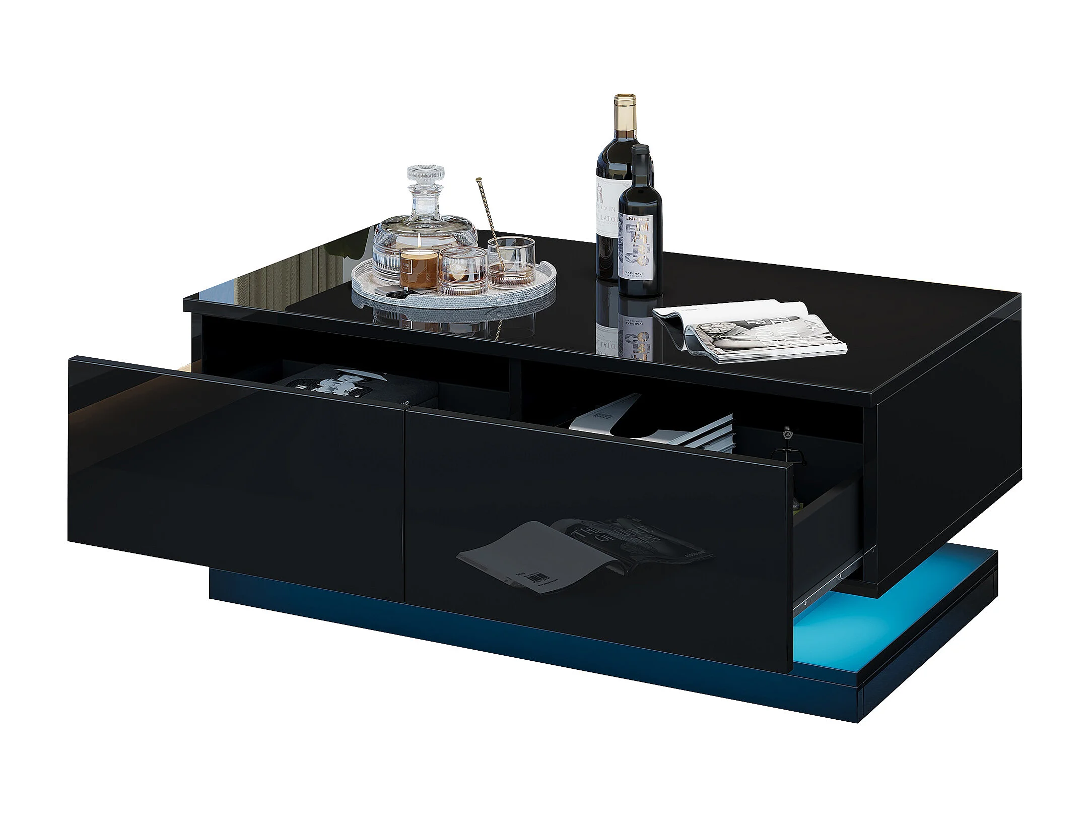 Zwarte salontafel met 2 opbergladen en LED-verlichting - voor woonkamers en kantoren