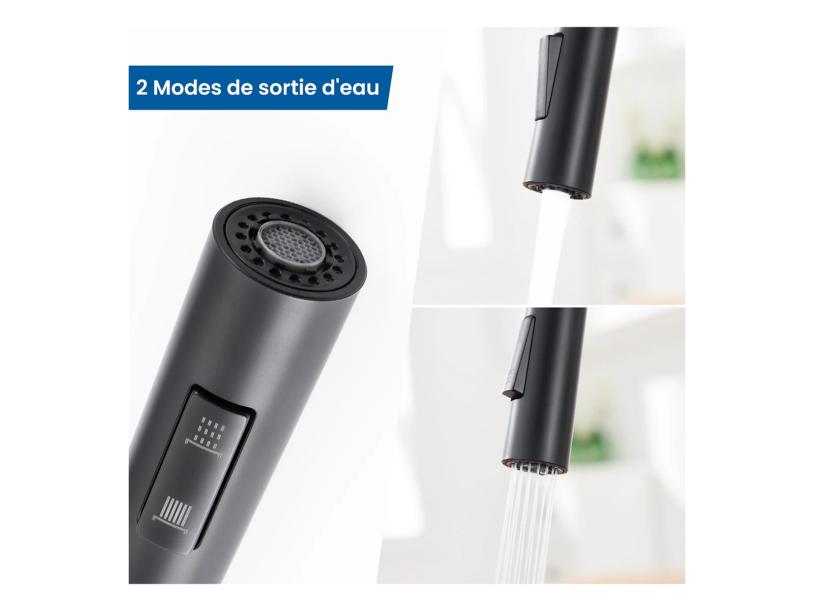 Kraan voor keuken van roestvrij staal - Mat zwart - ROMILY