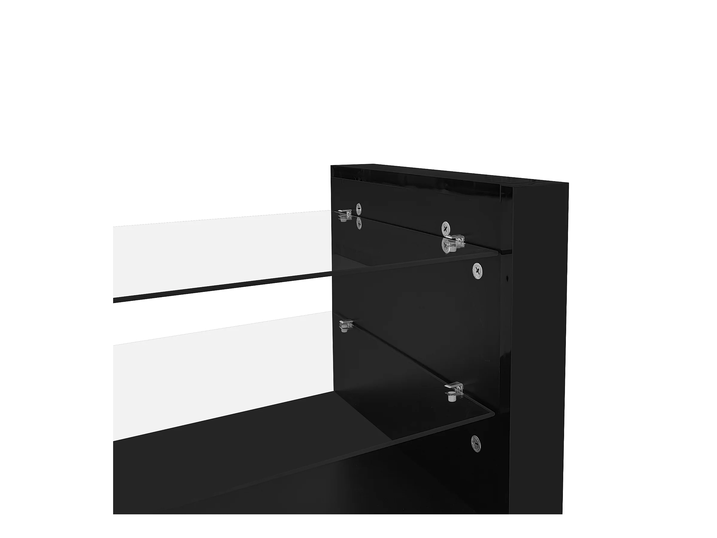 TV-meubel met 2 lades en open vak - 160 x 35 x 40,5 cm - LED's - Spaanplaat - Glanzend zwart