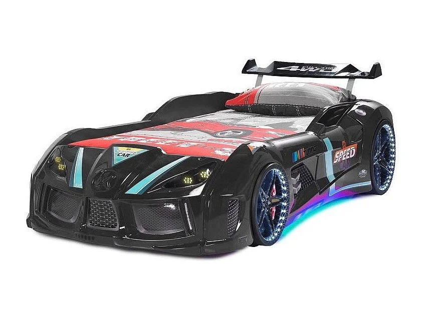 Autobed TURBO V8 met LED-verlichting en geluidseffecten – 90 x 190 cm-Kleur Zwart