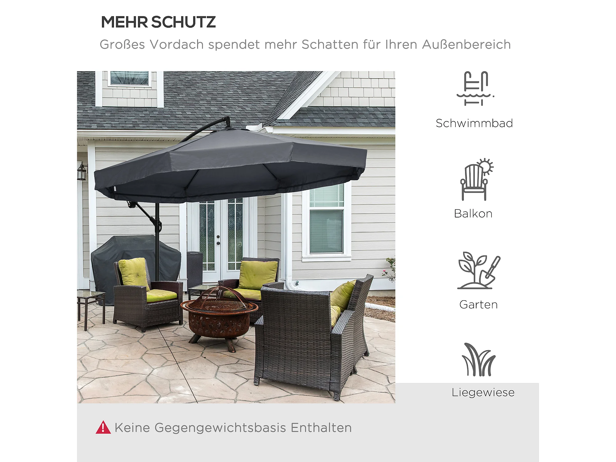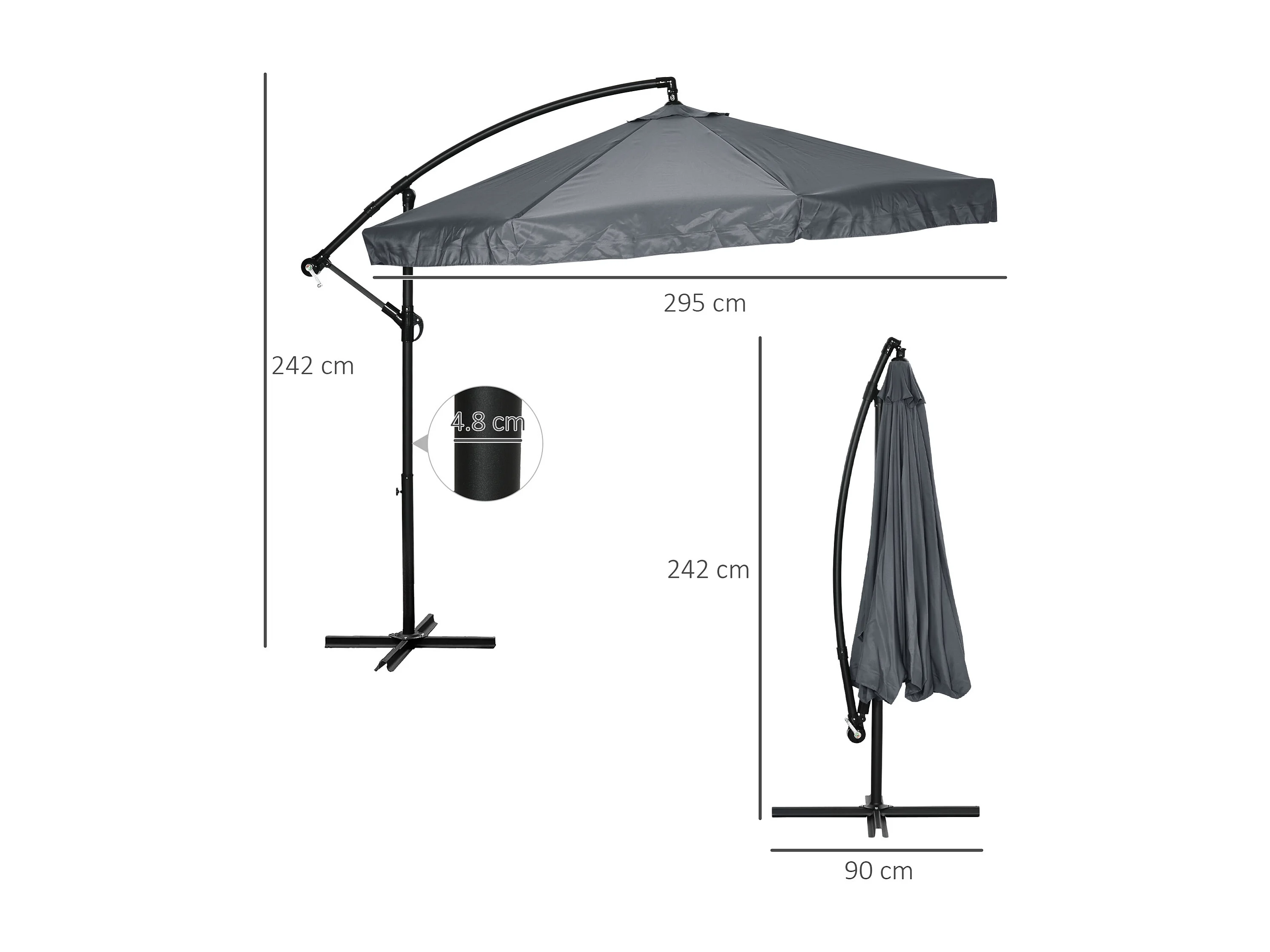 Zwenkbare parasol met slinger en klamboe, 360° draaibaar, voor 8 personen, staal en polyester, donkergrijs (295x295x242 cm)