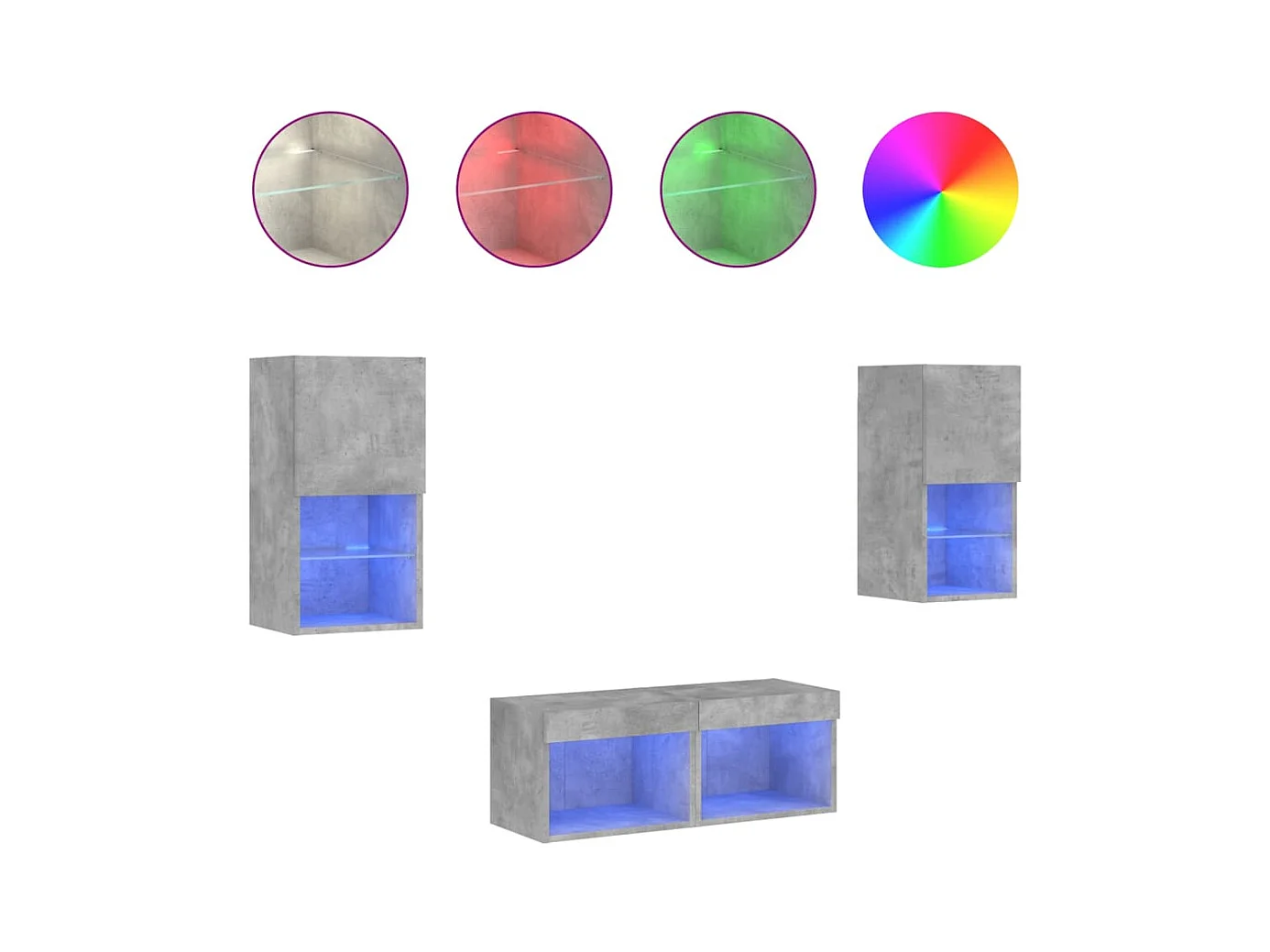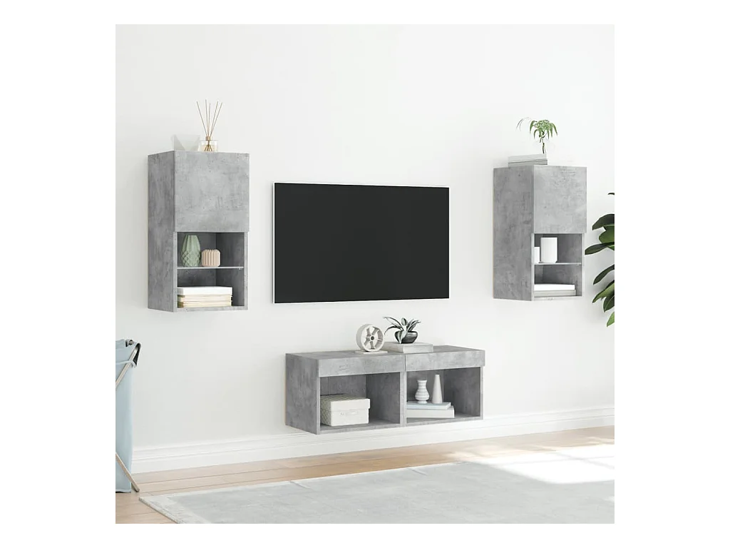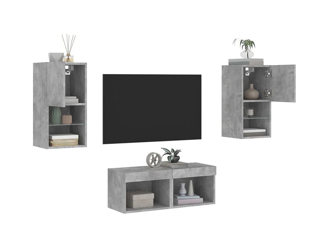 4-delige tv-wandmeubelset met LED-verlichting betongrijs