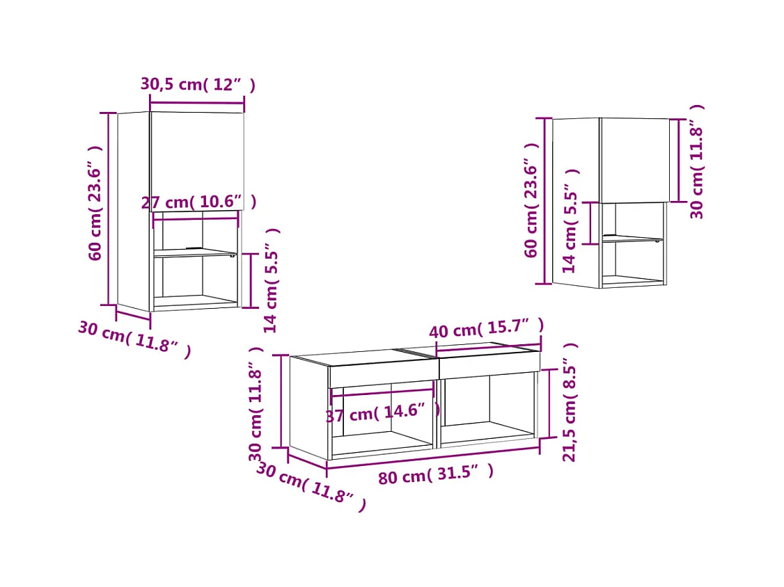 8-delige Tv-meubelset bewerkt hout grijs sonoma eikenkleurig