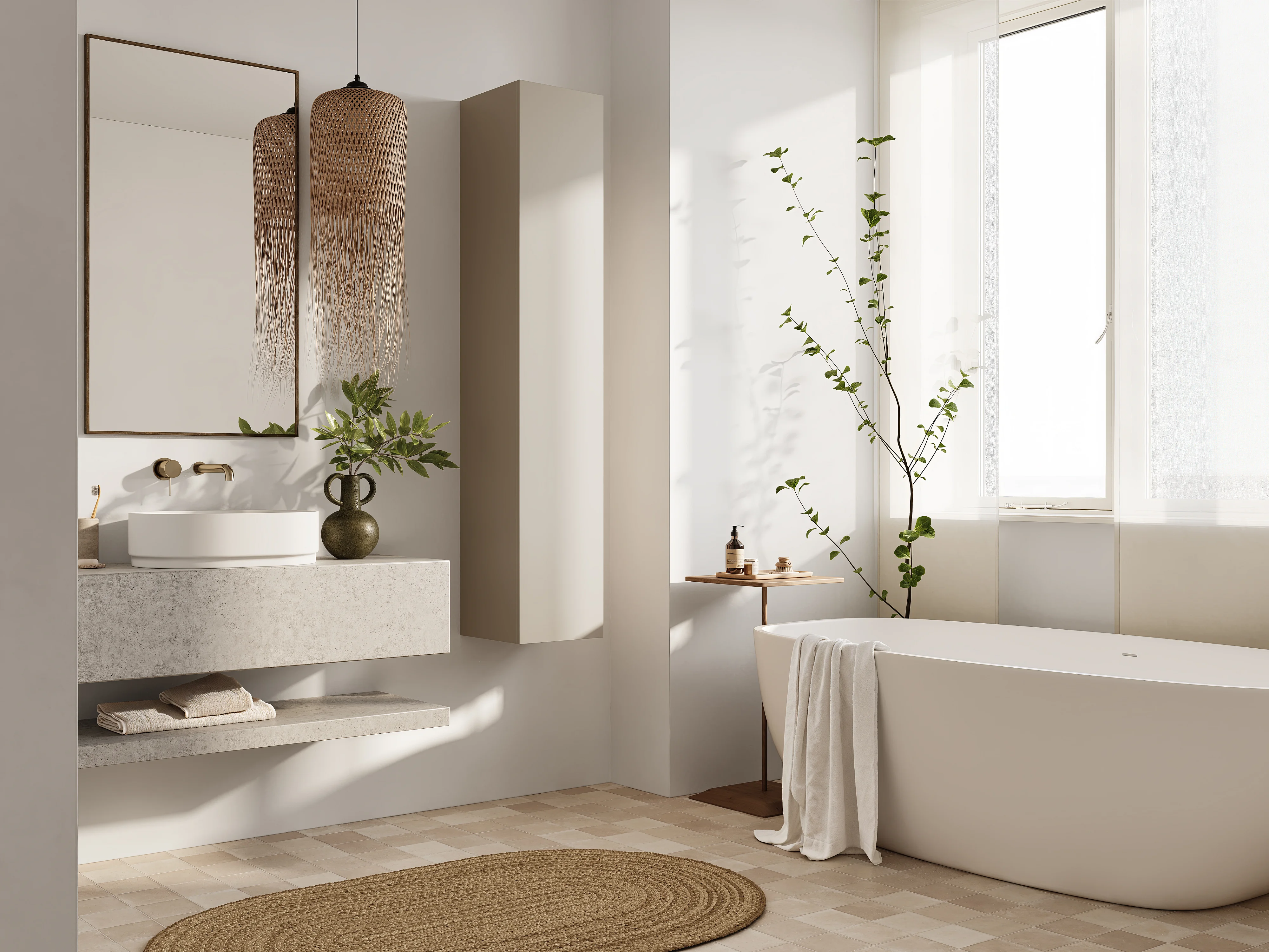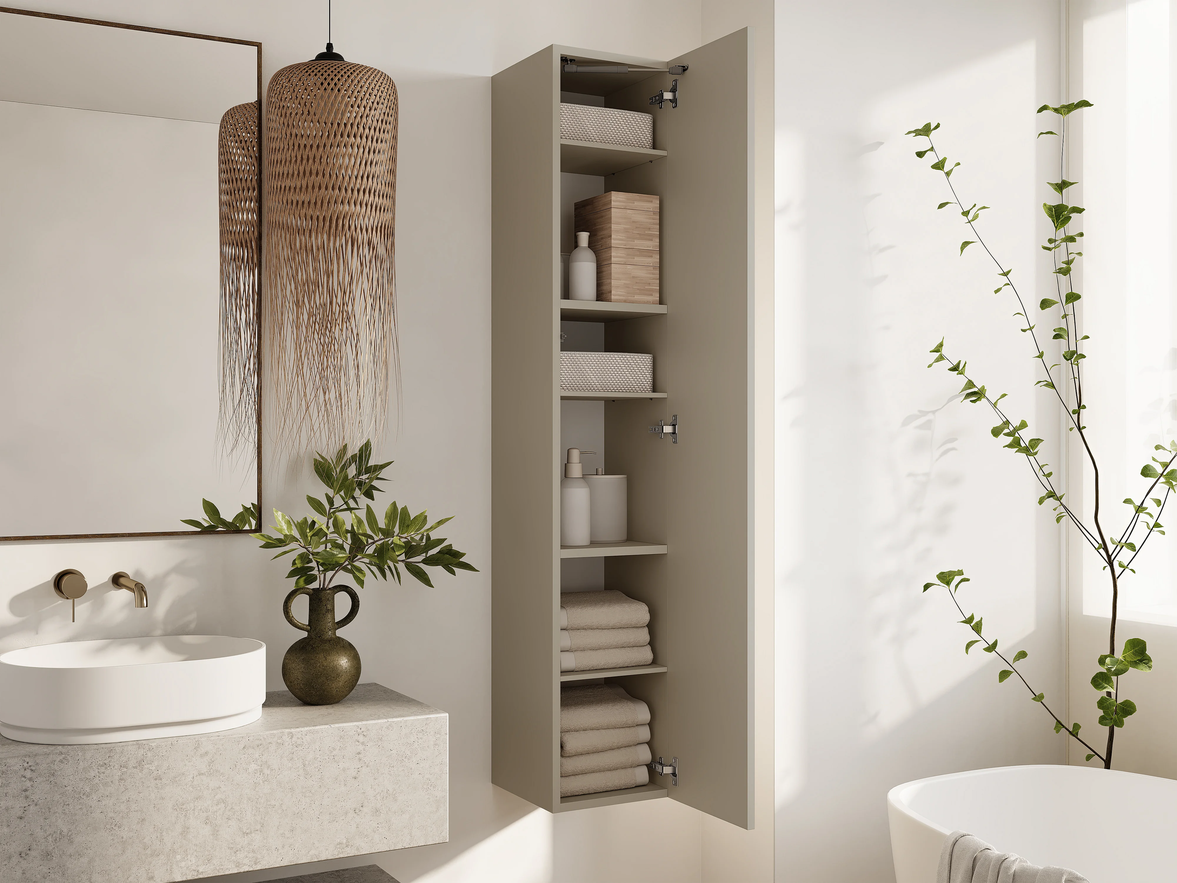 Zwevende badkamerkolom KAYA 105/160 cm – Moderne hoge kast met Push to Open-systeem