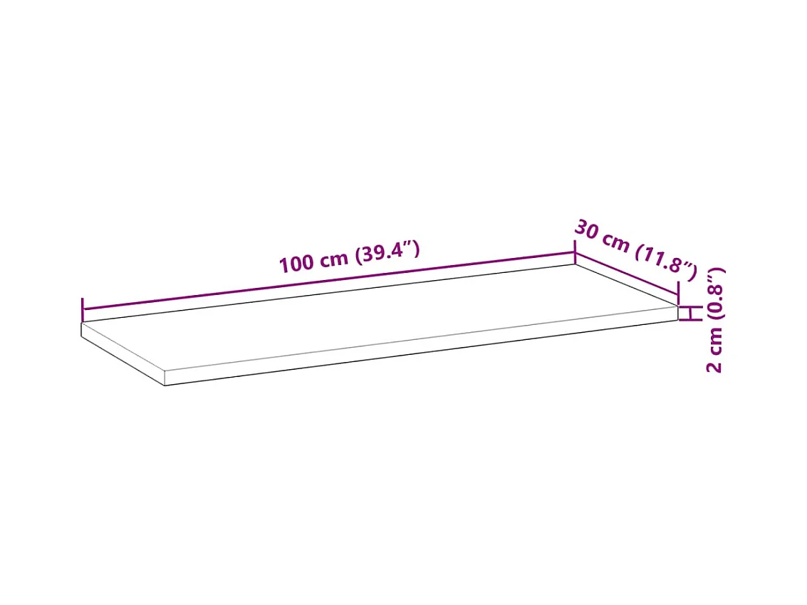 Zwevende plank 60x30x2 cm massief onbehandeld acaciahout